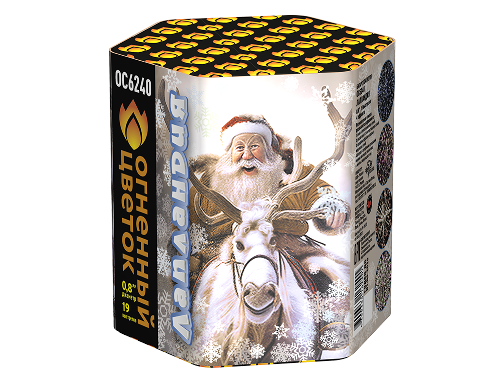 4. форсов с серебряными трещащими искрами на концах, фиолетовых и зеленых мерцающих огней.